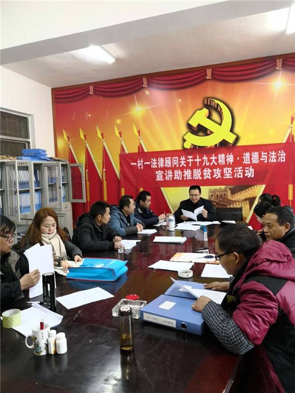 在为期10余天的系列讲座活动中,全所顾问律师深入偏远农村基层,组织广大党员干部和部分村民,认真学习了党的十九大报告,并着重就十九大报告中的“全面依法治国”和“道德与法治”精神与大家进行了学习和分享。同时顾问律师还结合目前农村正在进行的脱贫攻坚战,就如何深入领会十九大法治精神,发挥法治在脱贫攻坚战中的引领和保障作用,进行了详细讲解。