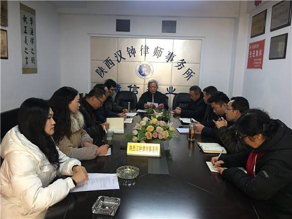 会上,所主任李明仁强调要求,全所律师要不折不扣地落实好市律师行业党委“思想奠基 党性塑造”暨第四次党委(扩大)会议精神,一是由闫奕律师负责,按照会议讨论的原则,在二个星期内修改好汉钟律师事务所章程,增加党建和党建经费等相关内容,切实做到党建引领业务工作,党建经费专账专户管理。二是由冉清海律师负责,抓好律师年终工作总结工作和律所迎接年终工作考核工作。三是担任民营企业法律顾问的律师,要迅速到顾问单位开展法治体检活动,李明仁、闫奕于12月17日已经到汉中市兴达房地产有限公司开展了法治体检工作,为公司在行政管理、合同管理、财务管理、经营管理等方面潜在存在的各种法律风险提出了法律防控意见和建议,其他顾问律师要按照市律师行业党委、市律协和律所的要求,务必在12月25日前完成民营企业法治体检工作并形成工作小结并报律所备案。四是积极开展好免费为省人大代表、政协委员法律顾问工作,担任3名省人大代表、4名省政协委员法律顾问工作的7名律师,要尽快与代表和委员们联系对接,最大限度的为其提供高效优质的法律服务。五是继续持之以恒的抓好汉钟所规范化建设工作。