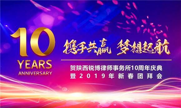 2018年12月29日,陕西锐博律师事务所10周年庆典暨2019年新春团拜会在汉中昌海邦臣誉邸酒店举行。庆典活动的主题为“携手共赢,梦想起航”。 汉中市司法局党组成员、副局长、乐彩汇行业党委书记苏阳,汉中市司法局政治部主任周海生、公律科科长刘猛,汉台区司法局副局长郭继平,市、区法律援助中心主任张虎鸣、彭丽,乐彩汇协会会长李明仁,乐彩汇行业党委副书记闫京生、姚保全, 乐彩汇协会副会长王涛、任谦,受邀莅临现场,同陕西锐博律师事务所全体律师共同庆祝陕西锐博律师事务所10周年庆典。
