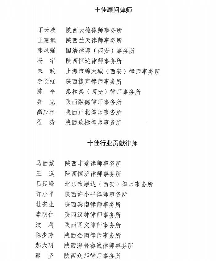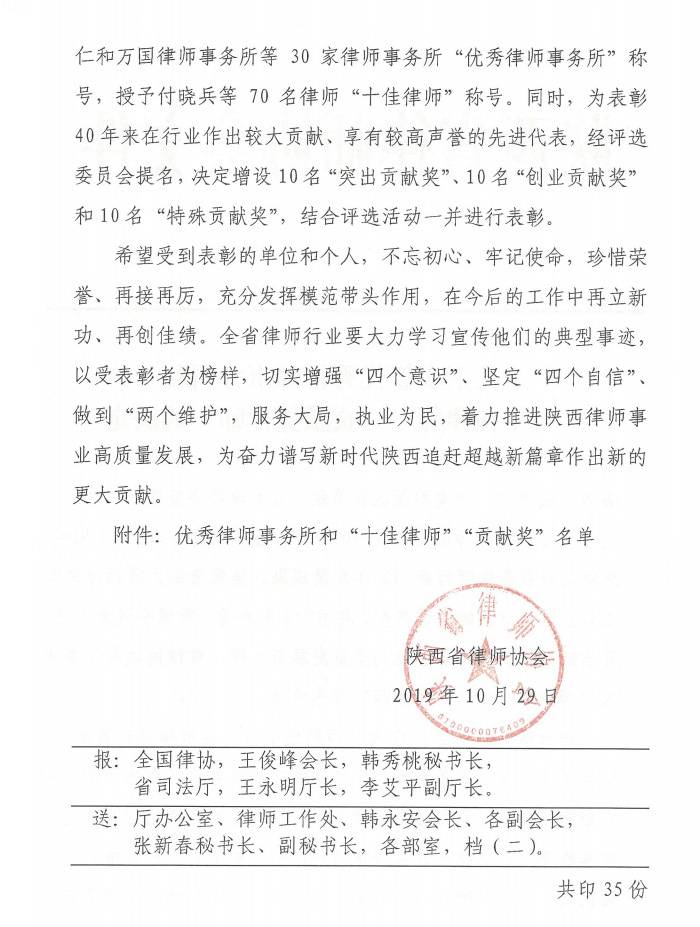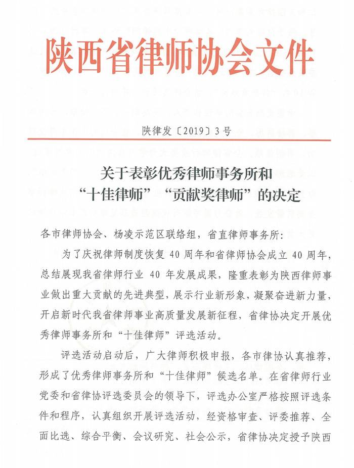 关于表彰优秀律师事务所和“十佳律师” “贡献奖律师”的决定