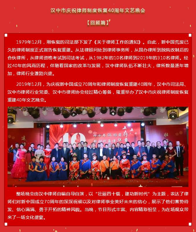 “壮丽四十载,建功新时代” ――汉中市庆祝律师制度恢复40年文艺晚会【回顾篇】