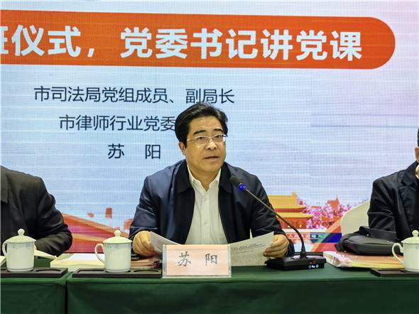 司法局党组成员、副局长、市律师行业党委书记苏阳出席开班仪式,市律师行业党委副书记阎京生主持会议。