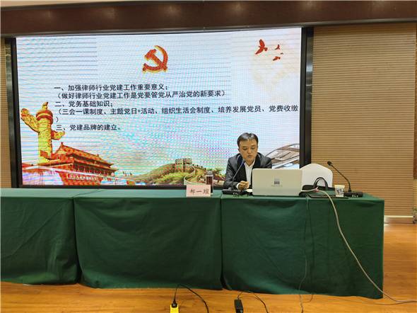 市委组织部非公党建科科长郝一u受邀为培训班讲授了《扎实做好律师行业党建实务工作》专题辅导课,为在场的市律师行业党委委员、支部书记和全体兼职党务工作者阐述了律师党建工作的重要意义,并从实务操作层面对“三会一课”、主题党日+、组织生活会、民主生活会、培养发展党员、党费收缴等党务基础知识进行了细致讲解,为提高汉中律师行业党建工作的质量和水平奠定了坚实基础。