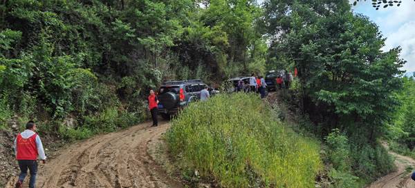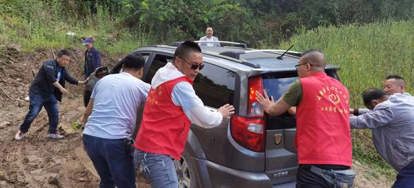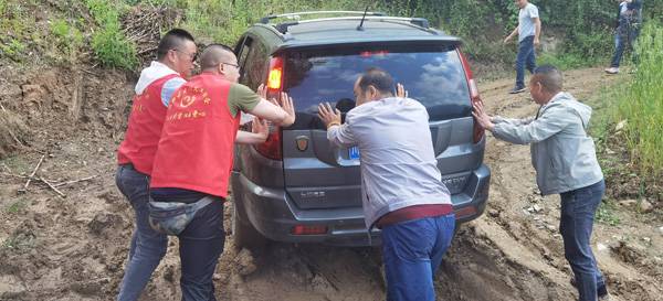 5月19日一大早,陕西兴州律师事务所主任李灿明便带领青年律师杜秋红及实习律师袁旭红、马婷一行4人与其他志愿者会合,一同出发前往天池坪烤烟种植基地。虽然才8点钟,但火红的太阳却早已升上天空,今天恐怕是炎热难耐了。初夏时节,草木丰盛,山清水秀,映入眼底的尽是郁郁葱葱的山间画卷,蜿蜒曲折的山路,向上盘旋着,沿着山路越往上,天空越明朗。昨夜突降一场大雨,原本大家还在担心今天的行程会泡汤,现在看来是多虑了。可这一路却并没有想象中的那么顺利,因山路崎岖,道路泥泞,加之坡陡弯急,车队一度无法继续前行而停滞在半路。一边是崎岖的泥路,一边又是正在山顶急切盼望着大家的村民,想到庄稼不等人,必须抢抓天时,所有人员没有丝毫退却之意。党员突击队员们撸起袖子,喊着口号,一起帮司机师傅推车,经过多次尝试,车子终于转过了泥泞的弯道,得以继续前行。