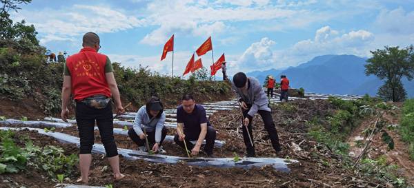 田家少闲月,五月人倍忙。时下,正值栽种烤烟的黄金时间,略阳县官地山村村民庞建新的略阳吉丰双旺种植养殖农民专业合作社,在该村天池坪有200亩烤烟种植基地,由于种植面积较广,加之今年春季以来雨量较大,眼看种植季节将过,烟苗却迟迟栽不到地里,这让他感到很着急。陕西兴州律师事务所主任李灿明律师作为官地山村法律顾问,在得知这一情况之后,当即决定必须帮助该村村民抢抓农时,栽种烤烟。律所党支部积极响应官地山村党支部号召,联合略阳县爱心义工协会党支部的党员干部、志愿者,共同组成一支共计40余人的志愿者队伍,决定前往该村天池坪烤烟种植基地帮助村民栽种烤烟。
