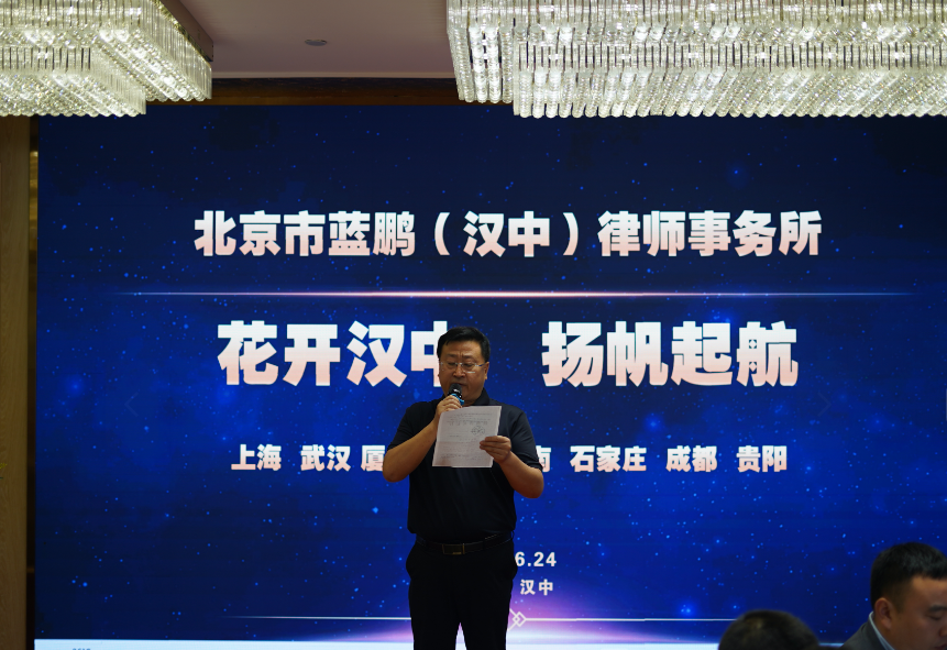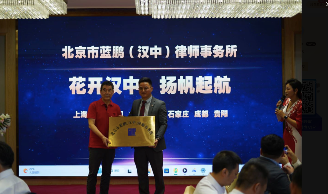 6月24日,从北京到汉中、蓝鹏律师公益普法启动仪式暨北京市蓝鹏(汉中)律师事务所开业典礼在陕西省汉中市隆重举行。汉中市司法局、乐彩汇协会、中国航空运输协会、香港M.B. KEMP LLP律师事务所代表团、北京市蓝鹏律师事务所及蓝鹏全国各分所主任、部分社会各界代表和媒体朋友参加了此次盛会。