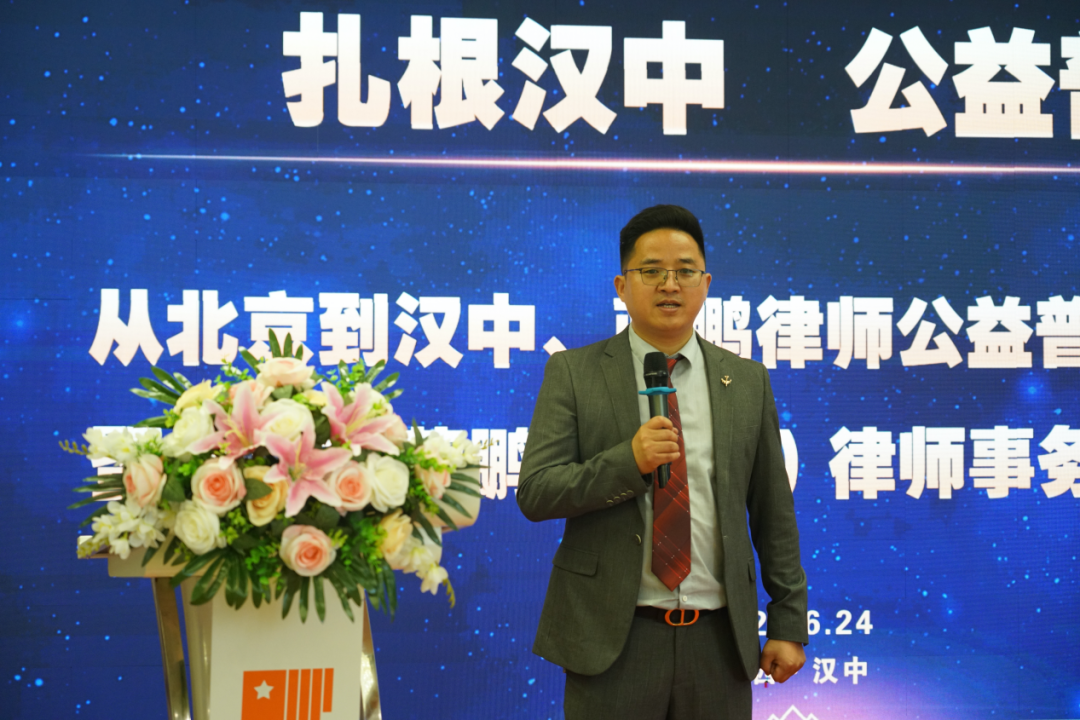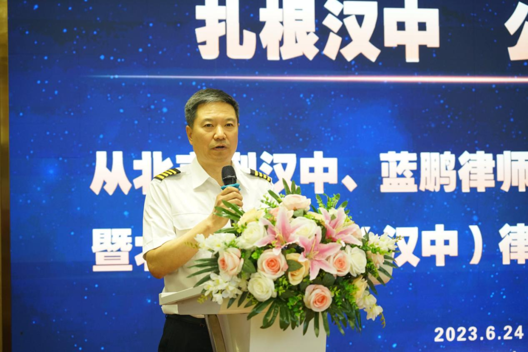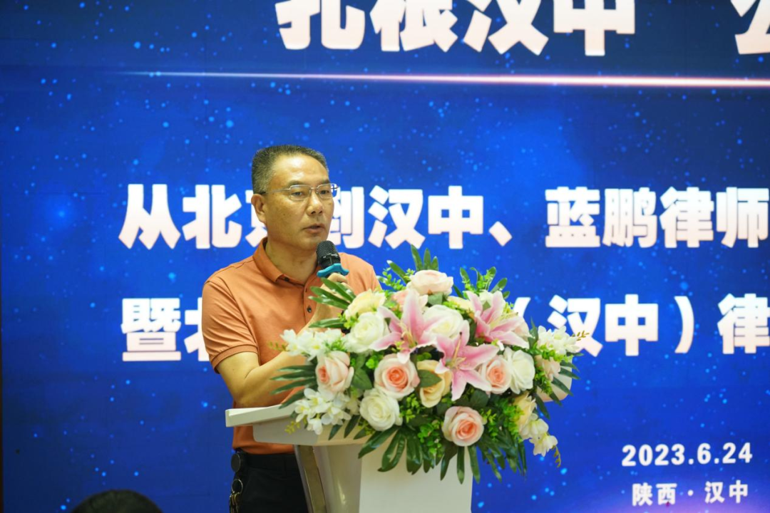 北京市蓝鹏(汉中)律师事务所主任纪瑞华,作为北京蓝鹏律师事务所派驻汉中分所的律师、负责人,就律所发展规划、公益普法实施方案向与会领导及嘉宾做了汇报和表态发言。他表示,蓝鹏汉中分所将不负蓝鹏总部期望、不负司法局和律协等组织关心信任,鼓励青年律师高质量发展,提高法律服务水平,注重法律公益服务,履行好全体蓝鹏律师政治责任、社会担当和公益情怀。