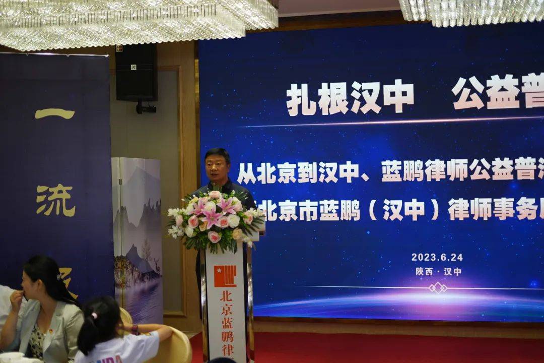 乐彩汇协会副会长闫京生为北京市蓝鹏(汉中)律师事务所授牌,并对北京市蓝鹏(汉中)律师事务所从北京到汉中,进行公益普法做了充分肯定。