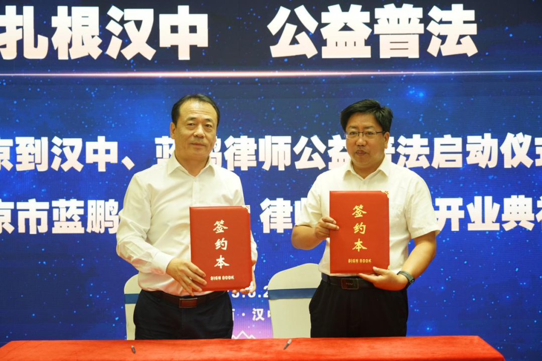 北京市蓝鹏(汉中)律师事务所纪瑞华主任与西安航投幸福通用航空科技有限责任公司总经理李建友签订法律顾问协议,蓝鹏汉中分所将继续为航空企业的发展做好风险控制和法律保障。